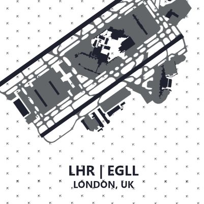 A Limited Edition of 50 secures this awesome aviation design, a Pilot's Chart style view of London Heathrow on a jet based white base.